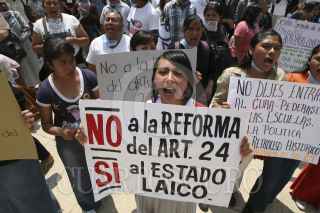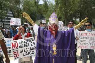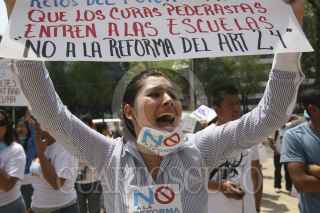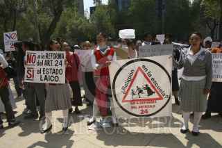 MÉXICO, D.F., 28MARZO2012.- Alumnos de diferentes instituciones y organizaciones laicas se manifestaron frente al Senado de la República en contra de las reformas al Artículo 24 de la Constitución. FOTO: JUAN PABLO ZAMORA /CUARTOSCURO.COM