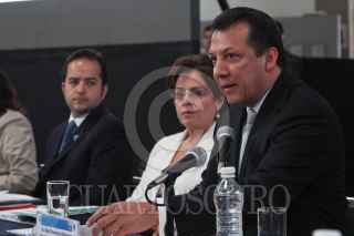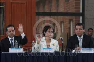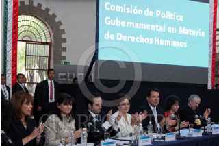 MÉXICO, D.F., 28MARZO2012.- Alejandro Poire, Secretario de Gobernación junto a Patricia Espinosa, Secretaria de Relaciones Exteriores y Raúl Plascencia Villanueva, Presidente de la CNDH durante la sesión Décima Quinta Sesión Ordinaria de la Comisión de Política Gubernamental en Materia de Derechos Humanos, en las instalaciones del Archivo General de la Nación. FOTO: ENRIQUE ORDÓÑEZ /CUARTOSCURO.COM