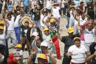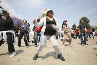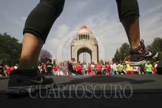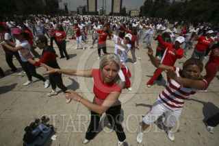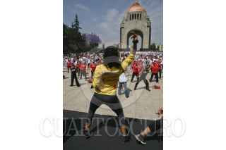 MÉXICO, D.F., 28MARZO2012.-El instituto del Deporte y Cultura Física del Distrito Federal celebró hoy el Día Mundial de Activación Física, el cual está previsto para el 6 de abril en todo el planeta. Asistieron representantes de las delegaciones Iztapalapa e Iztacalco, con integrantes de grupos de zumba, así como un agrupamiento de la Secretaría de Seguridad Pública, ejecutando una macro rutina de ejercicios en la explanada del Monumento a la Revolución, a la que asistieron más de 500 personas. FOTO: JUAN PABLO ZAMORA /CUARTOSCURO.COM