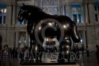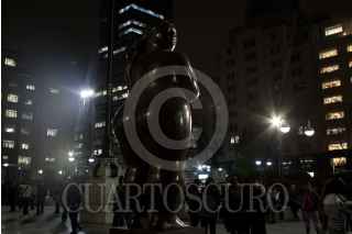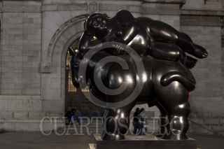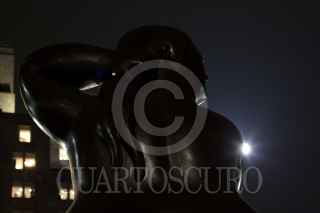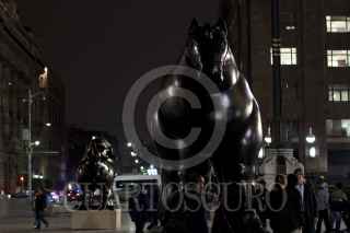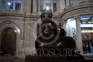 MÉXICO, D.F., 29MARZO2012.- Con la luz nocturna se acentúan la sensualidad de las formas en la esculturas de Fernando Botero que están en el patio del Palacio de Bellas Artes, las cuales forman parte de la exposición del colombiano que se encuentra en el interior del recinto. El artista ha señalado que a pesar de que mucha gente lo identifica como el "escultor de las gordas", a él solo le interesa el volumen, la proporción de las formas, la sinuosidad y sensualidad de la curvas, en su obra plástica. FOTO: MOISÉS PABLO /CUARTOSCURO.COM