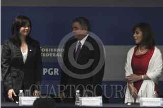 MÉXICO, D.F., 29MARZO2012.- Imelda Calvillo Tello, titular de la FEPADE junto a Leonardo Valdez Zurita, consejero presidente del IFE y Marisela Morales Procuradora General de la República durante la presentación del programa de trabajo de la Fiscalia Especializada para la Atención de Delitos Electorales. FOTO: ENRIQUE ORDÓÑEZ /CUARTOSCURO.COM