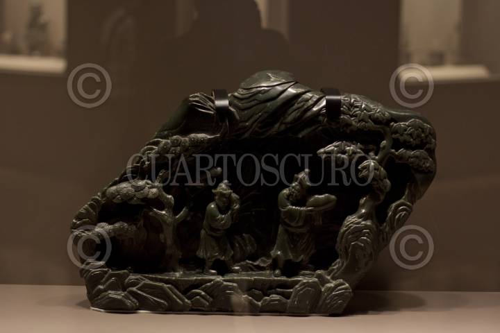 MÉXICO, D.F., 29MARZO2012.- El jade "la piedra preciosa", une a México y China en una exposición de 220 obras antiguas, procedentes del Museo del Palacio de Pekín, y de varios museos y zonas arqueológicas de México. La exposición abrirá este fin de semana en el Museo Nacional de Antropología. En China y Mesoaméricana antiguas, el jade fue considerado una piedra preciosa, incluso mas preciada que el oro o la plata en Occidente. La muestra que ha sido nombrada como "Piedras del Cielo, Civilizaciones del jade" y en ella se observan piezas de las civilizaciones olmeca, maya y mexica y por parte de china la mayoría de estas pertenecen a el periodo Neolítico. FOTO: MOISÉS PABLO /CUARTOSCURO.COM