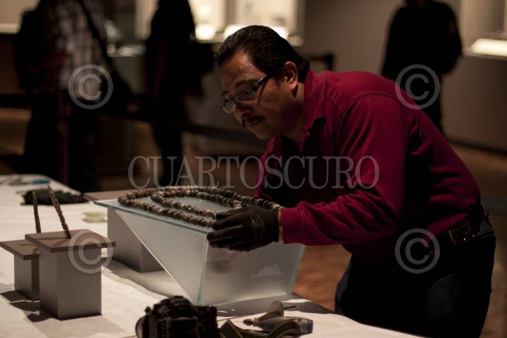 MÉXICO, D.F., 29MARZO2012.- El jade "la piedra preciosa", une a México y China en una exposición de 220 obras antiguas, procedentes del Museo del Palacio de Pekín, y de varios museos y zonas arqueológicas de México. La exposición abrirá este fin de semana en el Museo Nacional de Antropología. En China y Mesoaméricana antiguas, el jade fue considerado una piedra preciosa, incluso mas preciada que el oro o la plata en Occidente. La muestra que ha sido nombrada como "Piedras del Cielo, Civilizaciones del jade" y en ella se observan piezas de las civilizaciones olmeca, maya y mexica y por parte de china la mayoría de estas pertenecen a el periodo Neolítico. FOTO: MOISÉS PABLO /CUARTOSCURO.COM