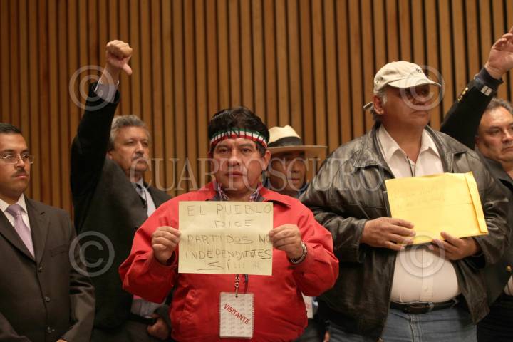 MÉXICO, D.F., 30MARZO2012.- José Luis González Meza, candidato independiente a la presidencia de la República, fue echado de la sesión del IFE, luego de lanzar un zapato al pleno, esto tras finalizar el punto referente a las candidaturas independientes, las cules fueron rechazadas por el consejo. FOTO: JUAN PABLO ZAMORA /CUARTOSCURO.COM