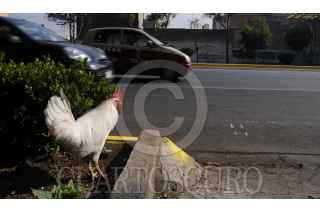 MÉXICO, D.F., 30MARZO2012.- Un gallo solitario pasea en calles de la capital. El animal comúnmente esta en granjas o vive en cautiverio, en cambio el ave decidió cambiar de contexto habitando la ciudad acorralado en la contaminación y tráfico vehicular. FOTO: DIEGO SIMÓN SÁNCHEZ /CUARTOSCURO.COM