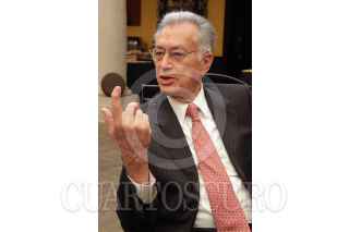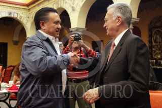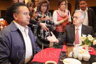 PUEBLA, PUEBLA, 30MARZO2012.- Manuel Barttlet candidato a senador de la república, se reunió con Martín Esparza, Secretario General del Sindicato de Electricistas (SME), en conocido hotel del centro de la ciudad de Puebla. FOTO: HILDA RÍOS /CUARTOSCURO.COM