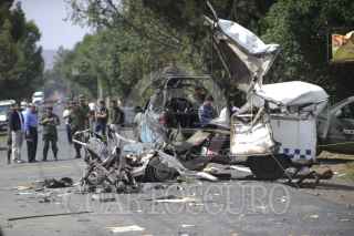 TEMAMATLA, ESTADO DE MÉXICO, 31MARZO2012.- Cuatro militares pierden la vida luego de chocar en la camioneta en que viajaban contra una combi, esto sobre la carretera Cocotitlan-Temamatla, municipio de Cocotitlan. FOTO: LUIS CARBAYO /CUARTOSCURO.COM