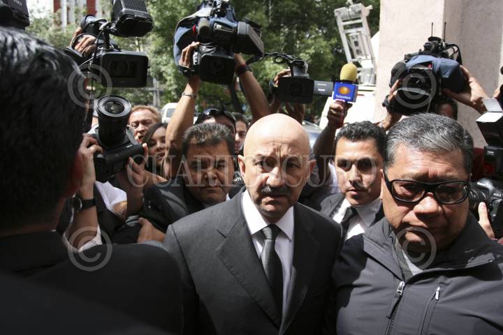 MEXICO, DF 01ABRIL2012.- Ernesto Cordero, exaspirante a la presidencia de la república por el PAN, llega al velorio del expresidente de la República Miguel de la Madrid Hurtado, quien falleció esta mañana en el Hospital Español. FOTO: GUILLERMO PEREA /CUARTOSCURO.COM