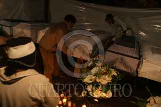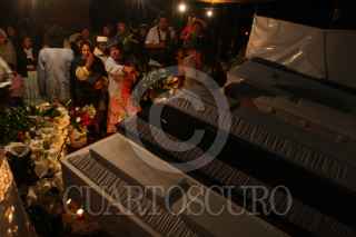 TLAHUITOLTEPEC MIXE, OAXACA, 01ABRIL2012.- La noche de el sábado 31 de marzo un rayó cayó en una choza en la que se resguardaban 8 personas en el rancho Escobilla de este municipio donde perdiendo la vida 6 personas de entre 7 y 49 años. Vecinos y amigos observaron los feretros de Agripina Martínez, Juana Jiménez Díaz, Virginia Jiménez Martíneze, Olivia Jiménez Martínez, Inocente Jiménez González y Héctor Jiménez González. FOTO: ARTURO PEREZ ALFONSO /CUARTOSCURO.COM