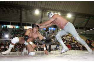 SALTILLO, COAHUILA, 02ABRIL2012.- La noche de ayer se realizó una función de lucha libre denominada "Gladiadores de la Era Moderna" en el Auditorio Nazario Ortiz Garza, en la que participaron El Hijo del Santo, Ángel Blanco Jr., Súper Crazy, Mascarita Dorada, Lobito, Hator, entre otros luchadores locales y regiomontanos. FOTO: KARLA ITZEL RUIZ/CUARTOSCURO.COM