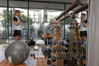 ENSENADA, BAJA CALIFORNIA, 04ABRIL2012.- Josefina Vázquez Mota, candidata por el PAN a la Presidencia de la República, realiza rutinas de ejercicio físico, durante su gira por Baja California. FOTO: ESPECIAL /CUARTOSCURO.COM