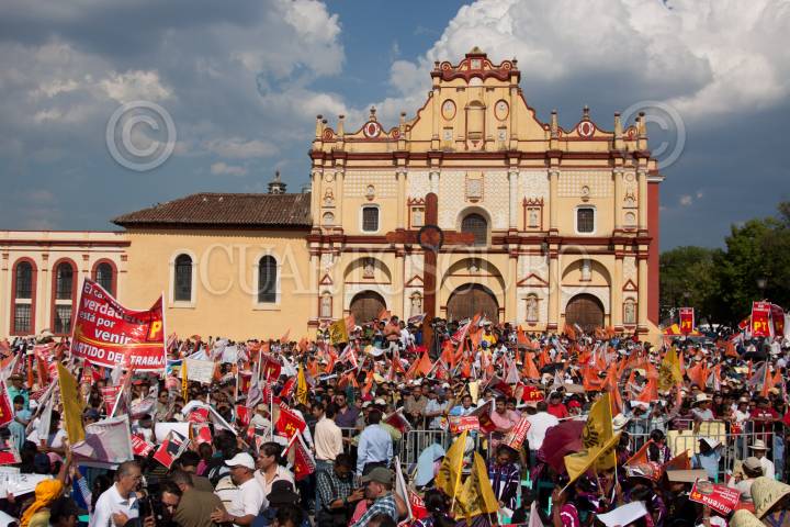 SAN CRISTÓBAL DE LAS CASAS, CHIAPAS, 04ABRIL2012.- Andrés Manuel López Obrador, candidato de las izquierdas mexicanas a la presidencia de la República, encabezó un mítin en la explanada municipal en el quinto día de su campaña. Al finalizar el evento saludó a los simpatizantes desde su vehículo conducido por Nicolás Mollinedo. FOTO: IVÁN STEPHENS /CUARTOSCURO.COM