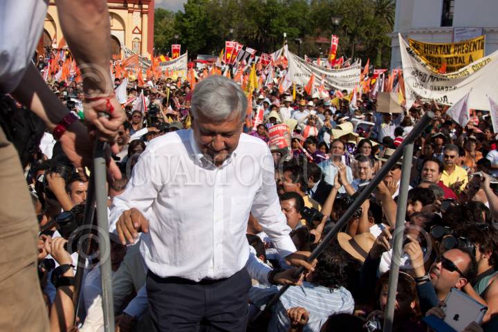 SAN CRISTÓBAL DE LAS CASAS, CHIAPAS, 04ABRIL2012.- Andrés Manuel López Obrador, candidato de las izquierdas mexicanas a la presidencia de la República, encabezó un mítin en la explanada municipal en el quinto día de su campaña. Al finalizar el evento saludó a los simpatizantes desde su vehículo conducido por Nicolás Mollinedo. FOTO: IVÁN STEPHENS /CUARTOSCURO.COM