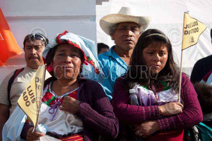 SAN CRISTÓBAL DE LAS CASAS, CHIAPAS, 04ABRIL2012.- Andrés Manuel López Obrador, candidato de las izquierdas mexicanas a la presidencia de la República, encabezó un mítin en la explanada municipal en el quinto día de su campaña. Al finalizar el evento saludó a los simpatizantes desde su vehículo conducido por Nicolás Mollinedo. FOTO: IVÁN STEPHENS /CUARTOSCURO.COM