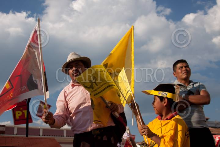 SAN CRISTÓBAL DE LAS CASAS, CHIAPAS, 04ABRIL2012.- Andrés Manuel López Obrador, candidato de las izquierdas mexicanas a la presidencia de la República, encabezó un mítin en la explanada municipal en el quinto día de su campaña. Al finalizar el evento saludó a los simpatizantes desde su vehículo conducido por Nicolás Mollinedo. FOTO: IVÁN STEPHENS /CUARTOSCURO.COM