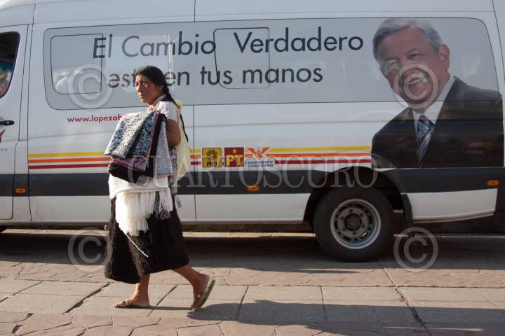 SAN CRISTÓBAL DE LAS CASAS, CHIAPAS, 04ABRIL2012.- Andrés Manuel López Obrador, candidato de las izquierdas mexicanas a la presidencia de la República, encabezó un mítin en la explanada municipal en el quinto día de su campaña. Al finalizar el evento saludó a los simpatizantes desde su vehículo conducido por Nicolás Mollinedo. FOTO: IVÁN STEPHENS /CUARTOSCURO.COM