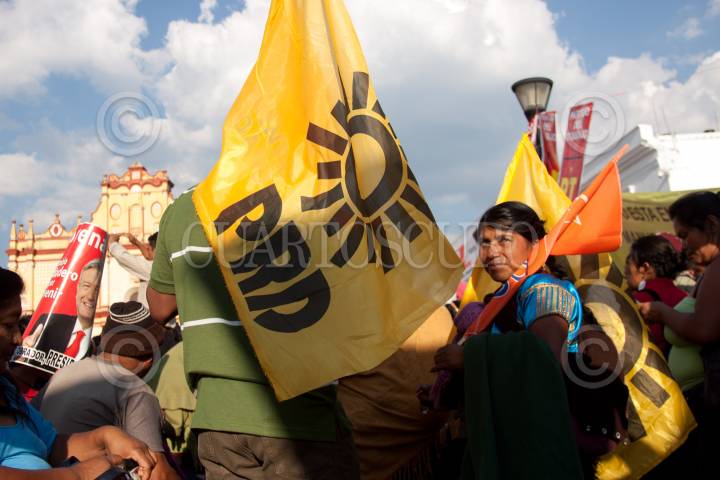 SAN CRISTÓBAL DE LAS CASAS, CHIAPAS, 04ABRIL2012.- Andrés Manuel López Obrador, candidato de las izquierdas mexicanas a la presidencia de la República, encabezó un mítin en la explanada municipal en el quinto día de su campaña. Al finalizar el evento saludó a los simpatizantes desde su vehículo conducido por Nicolás Mollinedo. FOTO: IVÁN STEPHENS /CUARTOSCURO.COM