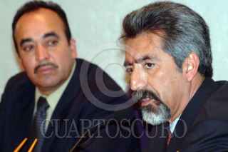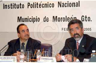 MEXICO, D.F. 09FEBRERO2005.- El Presidente Municipal de Moroleón, Guanajuato, Adrián Sánchez Contreras y el Director General del Instituto Politécnico Nacional, Enrique Villa Rivera signaron un convenio de colaboración para impulsar al sector textil y de la confección de ese ayuntamiento, a fin de poder hacer frente a la competencia desleal de productos asiáticos que se presenta en esa región del país. FOTO: IPN/CUARTOSCURO.COM