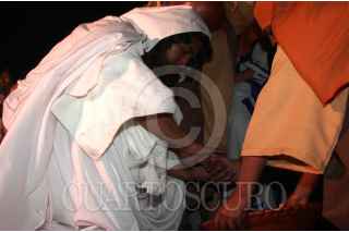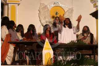 MÉXICO, D.F., 05ABRIL2012.- Como parte de la 169 representación de la Pasión y muerte de Cristo, se realizó la última cena y el lavado de pies en la explanada del jardín Cuitlahuac. FOTO: ENRIQUE ORDÓÑEZ /CUARTOSCURO.COM