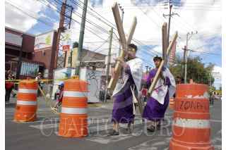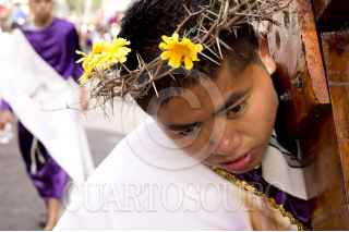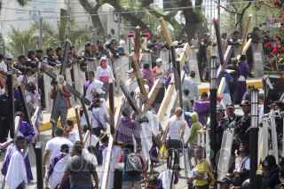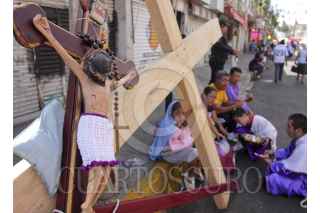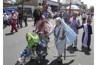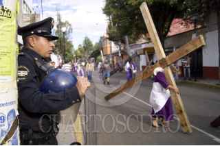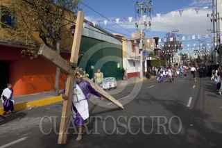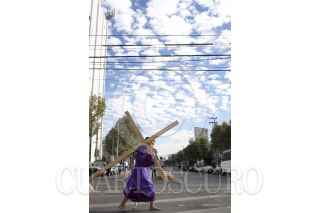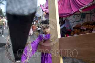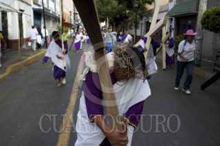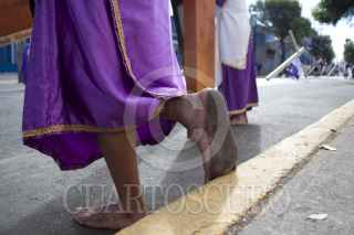 MÉXICO, D.F., 06ABRIL2012.- Desde tempranas jóvenes con los pies descalzos, iniciaron desde muy temprano el recorrido por los ocho barrios como parte de la 169 representación de La Pasión de Cristo en Iztapalapa, la cual fue declarada Patrimonio Cultural Intangible de la Ciudad de México. FOTO: SAÚL LÓPEZ /CUARTOSCURO.COM