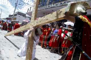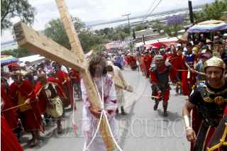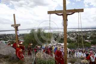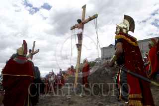 SAN JUAN ZITLALTEPEC, ESTADO DE MÉXICO, 06ABRIL2012.- En un pueblo a un costado de la laguna de Zumpango se celebró el Viacrucis de la Pasión de Cristo; Jesús de Nazaret, Rey de los Judios fue juzgado y crucificado de acuerdo a la tradición de la religión católica en este Viernes Santo ante cientos de personas que acudieron a la representación. FOTO: RODOLFO ANGULO /CUARTOSCURO.COM