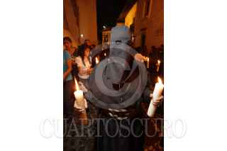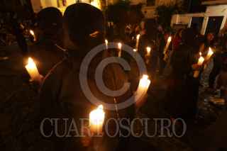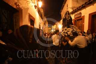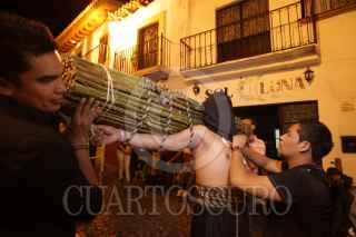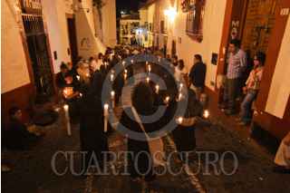 TAXCO, GUERRERO 07ABRIL2012.- Procesión del Silencio en honor a la Virgen de Los Dolores, imagen que es llevada por las calles de esta ciudad acompañada por fieles que expian sus culpas cargando varas de zarza en la espalda y descalzos. Con esta procesión, iniciada a las cero horas, comienza el sábado de Gloria. FOTO: JUAN PABLO ZAMORA /CUARTOSCURO.COM