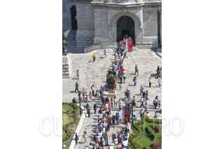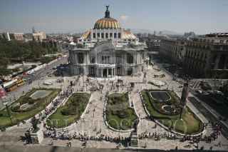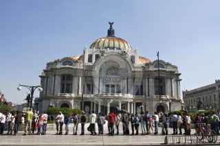 MÉXICO, D.F., 07ABRIL2012.- Cientos de personas hacen fila afuera del Palacio de Bellas Artes para poder ingresar a la exposición "Fernando Botero: una celebración", la cual recorre casi 65 años de obra plástica del artista colombiano. Según cifras del Instituto Nacional de Bellas Artes, 15 mil personas visitaron la miestra el primer fin de semana. FOTO: ISAAC ESQUIVEL /CUARTOSCURO.COM
