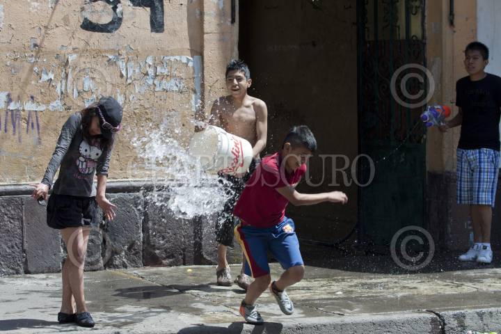 MÉXICO, D.F., 07ABRIL2012.- Niños, jóvenes y adultos se mojaron en la calle de República de Colombia en el Centro Histórico como parte de la celebración del Sábado de Gloria y en donde pasaron por alto la recomendaciones de abstenerse de desperdiciar el vital liquido. FOTO: RODOLFO ANGULO /CUARTOSCURO.COM