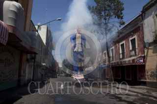 MÉXICO, D.F., 07ABRIL2012.- En la calle de República de Colombia en el Centro Histórico, vecinos realizaron la tradicional Quema del Judas personificado por Marcelo Ebrard, a su vez, se quemaron varios toritos en este Sábado de Gloria. FOTO: RODOLFO ANGULO /CUARTOSCURO.COM
