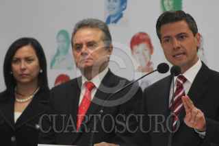 MÉXICO, D.F., 08ABRIL2012.- Enrique Peña Nieto, precandidato del PRI y PVEM a la presidencia de la república, en conferencia de prensa firmó un compromiso para darle continuidad al programa social Oportunidades, así mismo mencionó que el PRI no caerá en guerras sucias como las que utilizan sus adversarios, también detallo las actividades de su campaña en los estados de Yucatan, Morelos y Oaxaca. FOTO: SAÚL LÓPEZ /CUARTOSCURO.COM
