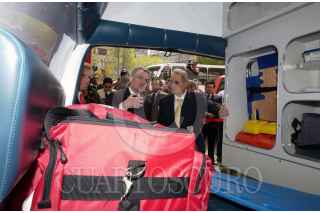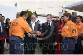 MEXICO, D.F. 10FEBRERO2005.- Olegario Vázquez Raña, director de la Cruz Roja y Santiago Creel Miranda, Secretario de Gobernación en la entrega de unidades a Grupos Beta para ayudar a los inmigrantes en la frontera sur de México. FOTO: Javier Tapia/CUARTOSCURO.COM