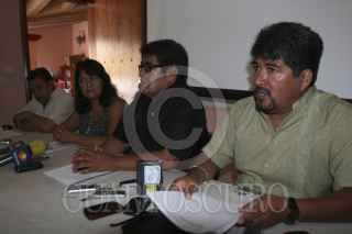 OAXACA, OAXACA, 09ABRIL2012.- Los hermanos de derecha a izquierda, Fernando, Héctor y María Isabel acompañados de su abogado, Alberto García, reiteraron su exigencia de justicia, luego de que el dirigente de la Sección 22, Azael Santiago Chepi allanara su hogar el pasado fin de semana en la calle de Acasia ubicada en los límites entre los municipios de Oaxaca de Juárez y Santa Lucía. Refirieron que el líder gremial los amenazó de muerte por lo cual ya se presentó una demanda ante la Procuradurúa General de Justicia del Estado. Además exigirán a los elementos de la policía municipal de ambas demarcaciones así como Estatal quienes hicieron acto de presencia pero que no detuvieron a Chepi aun cuando el delito fue cometido ante ellos. FOTO: ARTURO PÉREZ ALFONSO /CUARTOSCURO.COM
