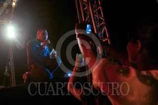 CD. DEL CARMEN, CAMPECHE, 09ABRIL2012.- El cantautor Isidro Chávez, mejor conocido como Espinoza Paz, quien ha hecho popular el tema musical "Al Diablo lo Nuestro", se presento en el marco del Carnaval efectuado en Playa Norte, donde fans tuvieron que esperar mas de tres horas de retraso para escuchar al sinaloense. FOTO: MARCO POLO GUZMÁN HERNÁNDEZ/CUARTOSCURO.COM