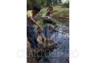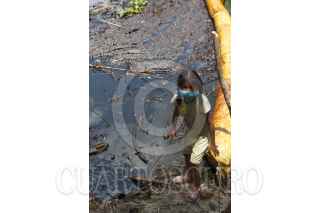 CUNDUACÁN, TABASCO, 10ABRIL2012.- Daños irreversibles de Petróleos Mexicanos son causados en al menos tres kilómetros del arrollo y su caudal en especies acuáticas y aves de la localidad que son provocados por el derrame de hidrocarburo en el poblado Felipe Carrillo Puerto. Habitantes de la zona indican que los fuertes olores del petróleo están afectando en el sistema respiratorio principalmente en niños y adultos. FOTOS: MARCO POLO GUZMÁN HERNÁNDEZ/CUARTOSCURO.COM