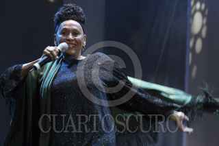 PUEBLA, PUEBLA, 10ABRIL2012.- La cantante cubana Omara Portuondo, ex-vocalista de la orquesta Buena Vista Social Club, se presentó con éxito en el zócalo de la ciudad como parte de las actividades del Festival Internacional 5 de Mayo. FOTO: HILDA RÍOS /CUARTOSCURO.COM