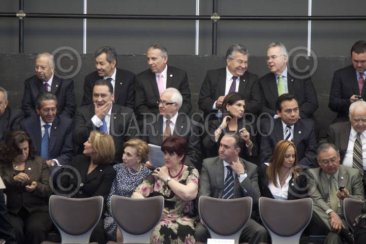 MÉXICO, D.F., 11ABRIL2012.- La senadora María Rojo conversa con Francisco Arroyo Vieyra, durante la sesión en la Cámara de Senadores. FOTO: MOISÉS PABLO /CUARTOSCURO.COM