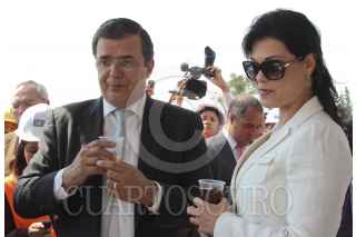 MÉXICO, D.F., 12ABRIL2012.- Marcelo Ebrard Casaubon, Jefe de Gobierno Capitalino junto a su esposa Rosalinda Bueso al termino del recorrido por la construcción de la Autopista Urbana Sur en la incorporación de Periférico Sur casi esquina con avenida de la Luz. FOTO: ENRIQUE ORDÓÑEZ /CUARTOSCURO.COM