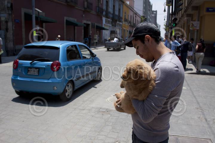 MÉXICO, D.F., 12ABRIL2012.- En la ALDF se esta trabajando para se apruebe un dictamen en el cual se modifica la Ley para la celebración de Espectáculos Públicos en el DF que propone prohibir la celebración de las corridas de toros en la Ciudad de México y el maltrato animal en general. En la imagen un joven cuida cariñosamente a su perro en el Centro Histórico. FOTO: MOISÉS PABLO /CUARTOSCURO.COM