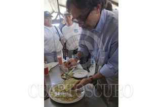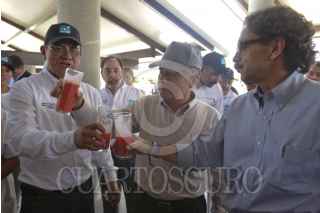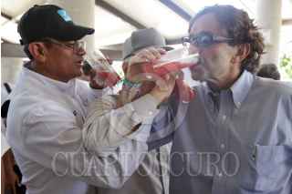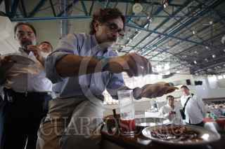 ATITALAQUIA, HIDALGO 12ABRIL2012.- Gabriel Quadri De La Torre, candidato presidencial de Nueva Alianza, comió tacos de chinicuiles y escamoles (gusanos de maguey tradicionales de la región del Vallé del Mezquital), el político se tomo un vaso de pulque curado de fresa. FOTO: JUAN PABLO ZAMORA /CUARTOSCURO.COM