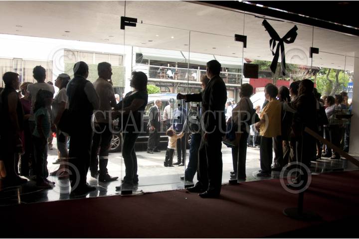 MÉXICO, D.F., 12ABRIL2012.- Decenas de personas se esperan a las afueras del Teatro Jorge Negrete para asistir al homenaje que la Asociación Nacional de Actores le rindió a el actor, Julio Alemán, quien fuera uno de sus más destacados miembros y que falleciera erl día de ayer por complicaciones derivadas de un cáncer que se le detectó el año pasado, le sobreviven su esposa e hijos. FOTO: FRANCISCO RODRÍGUEZ /CUARTOSCURO.COM