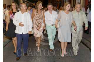 CARTEGENA DE INDIAS, COLOMBIA, 13ABRIL2012.- Felipe Calderón Hinojosa, presidente de México, acompañado de su esposa Margarita Zavala, realizaron una caminata la noche de ayer por las calles del centro Histórico de Cártagena en compañía de sus homólogos, Juan Manuel Santos, presidente de Colombia y su esposa María Clemencia Rodríguez; y Sebastián Piñera Echenique, presidente de Chile, acompañado de su cónyuge Cecilia Morel Montes. FOTO: CUARTOSCURO.COM