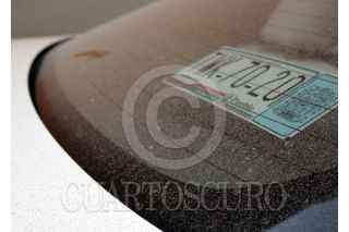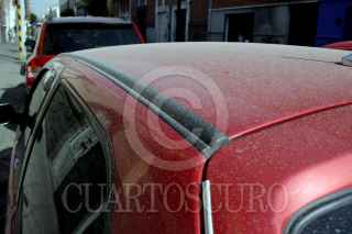 PUEBLA, PUEBLA, 14ABRIL2012.- Autos amanecieron cubiertos de ceniza volcánica luego de que la madrugada de hoy el Popocatépetl emitiera exhalaciones continuas sin mayor peligro para la población. FOTO: HILDA RÍOS /CUARTOSCURO.COM