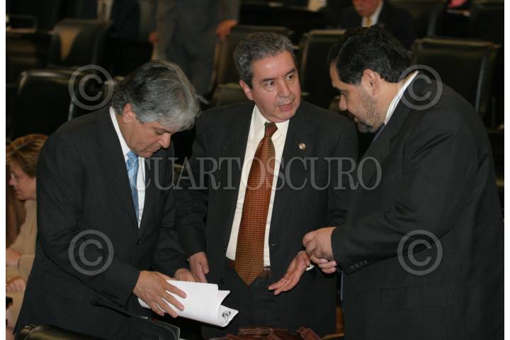MEXICO, D.F. 17FEBRERO2005.- Los senadores Humberto Roque Villanueva y Héctor Larios conversan durante la sesión en el senado de la República. FOTO: Nelly Salas/CUARTOSCURO.COM
