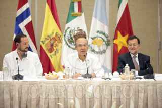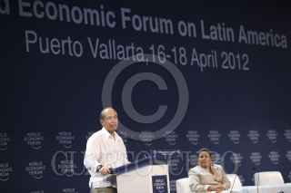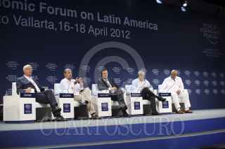 PUERTO VALLARTA, JALISCO, 17 ABRIL2012.- Felipe Calderón Hinojosa, Presidente de México, durante la sesión plenaria del Fondo Económico Mundial. FOTO: ALFREDO GUERRERO /CUARTOSCURO.COM