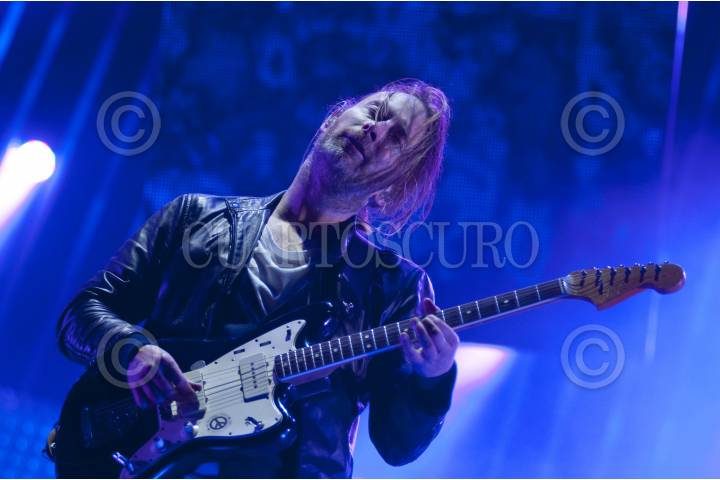 MÉXICO, D.F., 17ABRIL2012.- La banda de rock, Radio Head tocó en una noche muy lluviosa en el Foro Sol, en el primero de sus dos conciertos. La banda con una trayectoria de 15 años esta en su tercera visita, lo cual fue agradecido por el público que abarrotó el inmueble. FOTO: FRANCISCO RODRÍGUEZ /CUARTOSCURO.COM