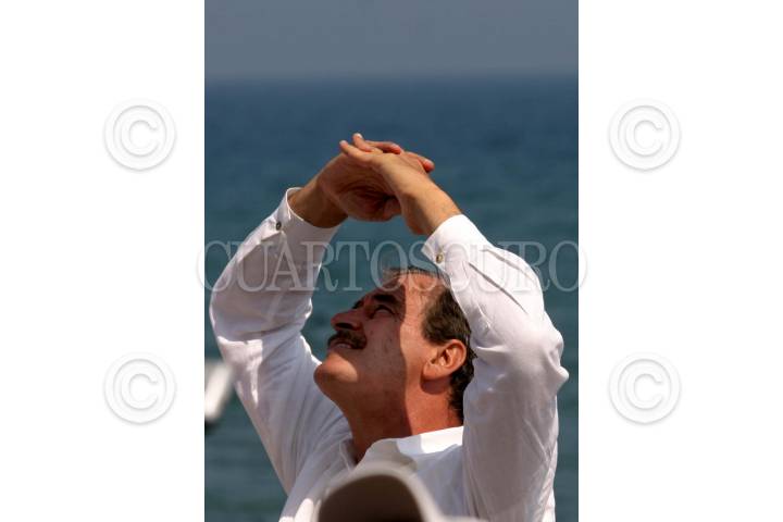 Boca del Río, Veracruz, 17FEBRERO2005.- Vicente Fox Quesada, presidente de la República, observo las maniobras militares en las playas del Salado, como parte de una demostración de tácticas de la Fuerza Naval del Golfo. FOTO: Moisés Pablo/CUARTOSCURO.COM