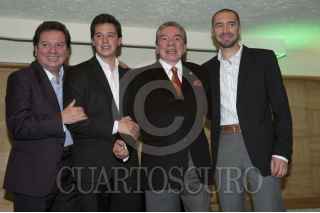 MÉXICO, D.F., 18ABRIL2012.- Jorge Muñiz, su hijo, Axel Muñíz, su abuelo, Marco Antonio Muñiz y su hijo Antonio Muñiz, posaron para los medio de comunicación al final de la conferencia de prensa donde se anunció el concierto el 20 mayo con el cual "El Lujo de México" se despide de los escenarios en el Auditorio Nacional. FOTO: FRANCISCO RODRÍGUEZ /CUARTOSCURO.COM