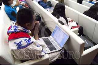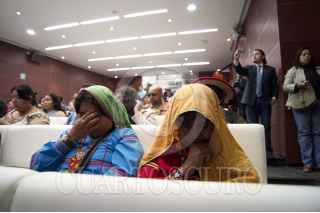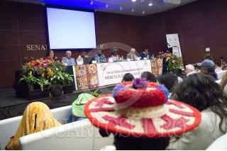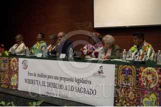 MÉXICO, D.F., 18ABRIL2012.- Decenas de Huicholes e integrantes del Frente en defensa de Wirikuta, acudieron al Senado de la República con motivo del Foro "Wirikuta, el derecho a lo sagrado", en el cuál se realizó un analisis sobre la minera canadiense que pretende explotar el territorio sagrado huichol en San luis Potosí, y lo que esto implica. En el foro participaron la escritora Elena Poniatowska, el senador Pablo Gómez, la reconocida antropóloga Magdalena Gómez, el doctor Rodolfo Stavenhaguen, así cmo tamnién autoridades del pueblo Wixaritari (huichol). El día de mañana se llevará a cabo la segunda mitad de este foro. FOTO: PEDRO ANZA /CUARTOSCURO.COM