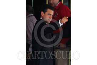 MÉXICO, D.F., 18ABRIL2012.- Enrique Peña Nieto, candidato a la presidencia de la república por el PRD, durante la llegada en un hotel de la zona de Paseo de la Reforma a la reunión que sostuvo con el presidente del gobierno español Mariano Rajoy. FOTO: SAÚL LÓPEZ /CUARTOSCURO.COM