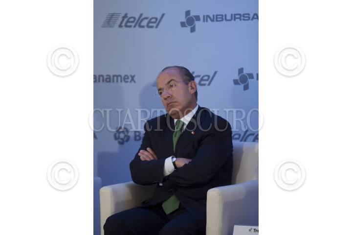 MÉXICO, D.F., 19ABRIL2012.- Irene Espinosa Cantellano, Tesorera de la Federación y el presidente Felipe Calderón durante el lanzamiento del nuevo sistema de pagos móviles denominado Transfer que se realizo en un hotel del Paseo de la Reforma. FOTO: RODOLFO ANGULO /CUARTOSCURO.COM